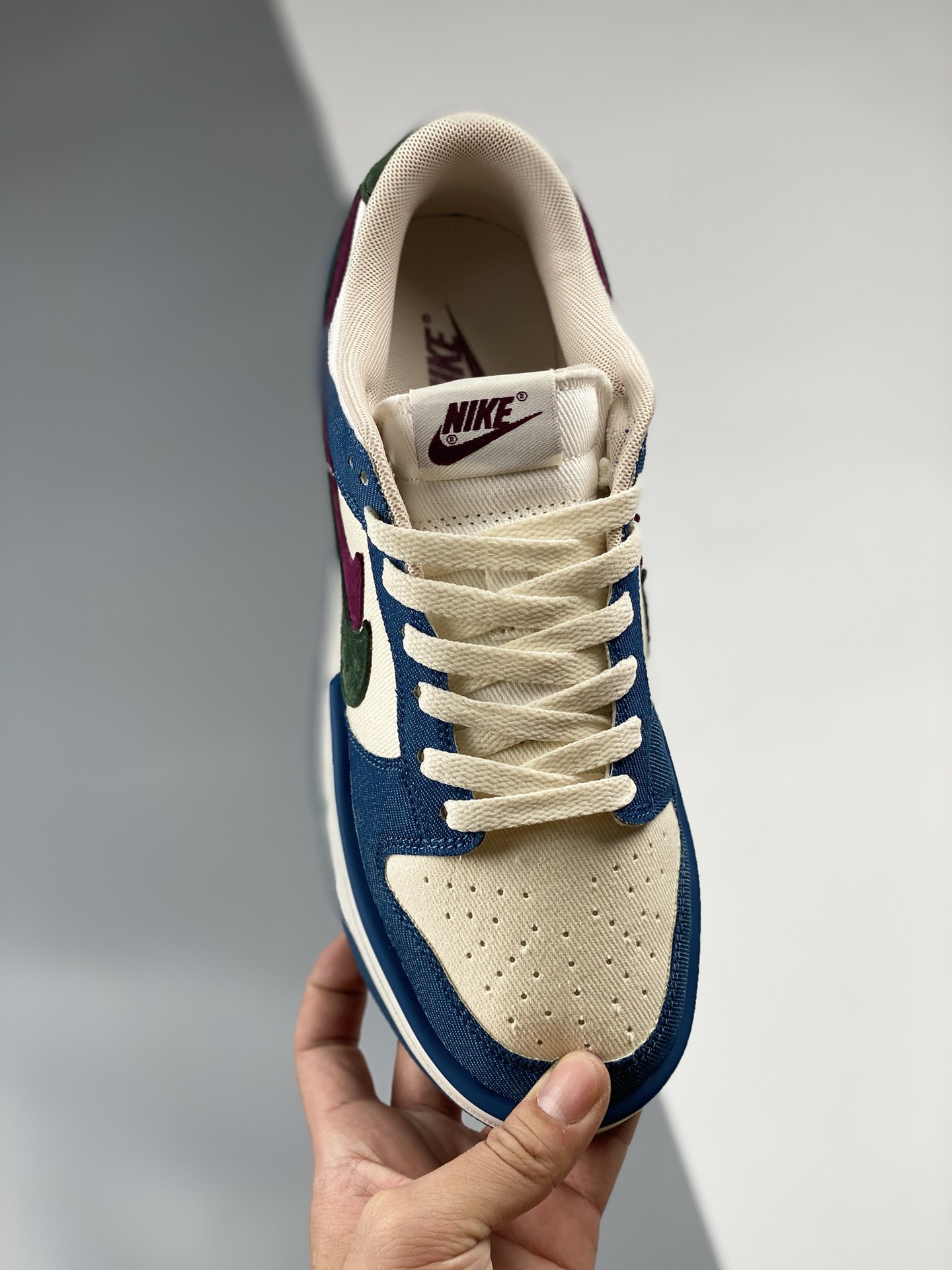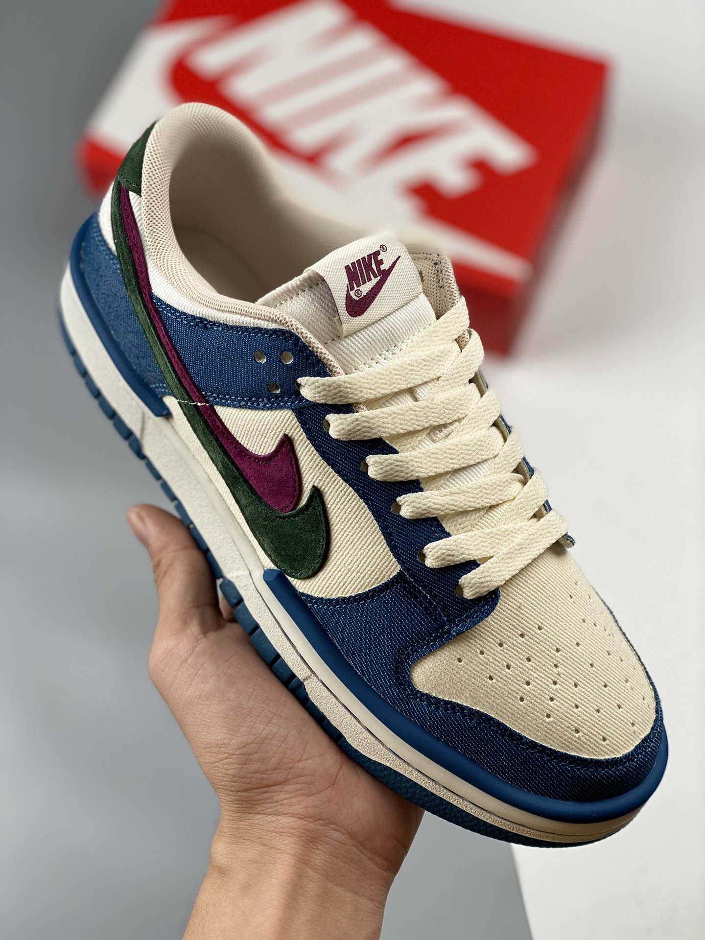 • New Nike dunk low red and green Denim customized double hook flat shoes