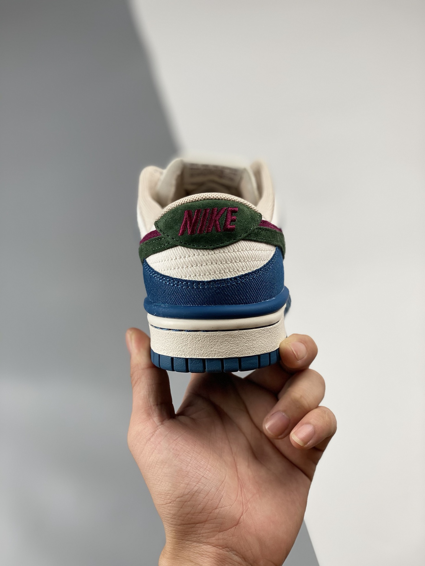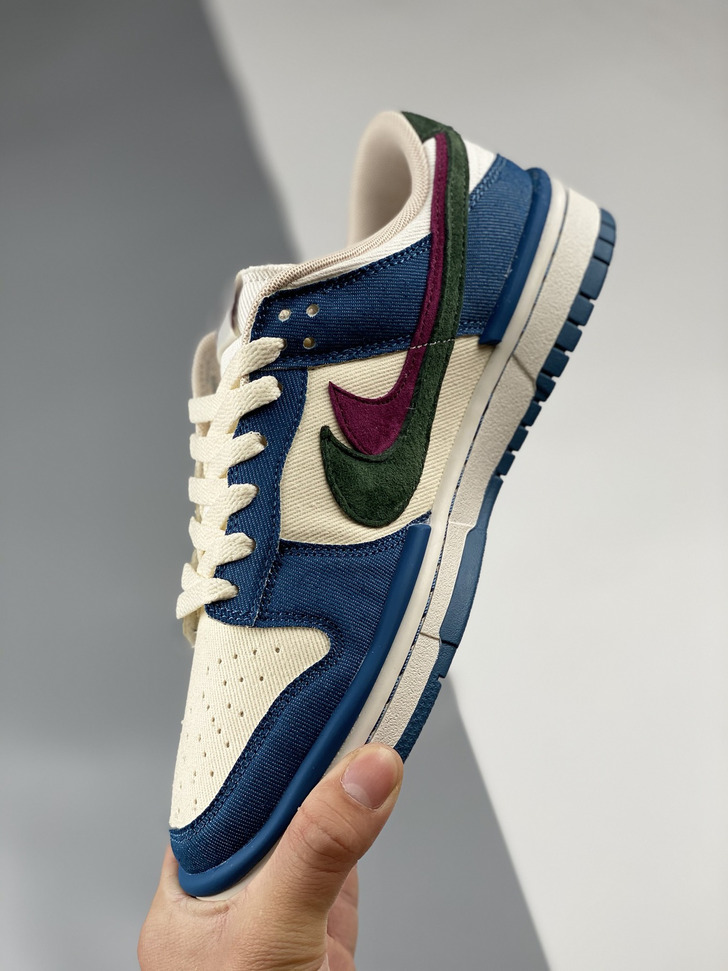 New Nike dunk low red and green Denim customized double hook flat shoes