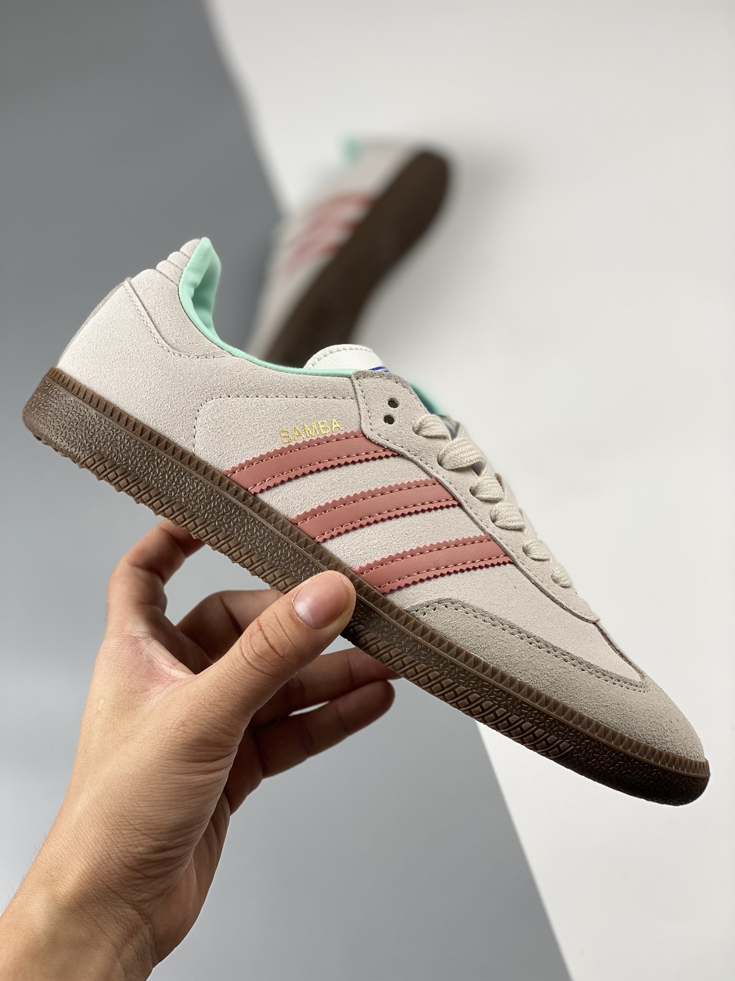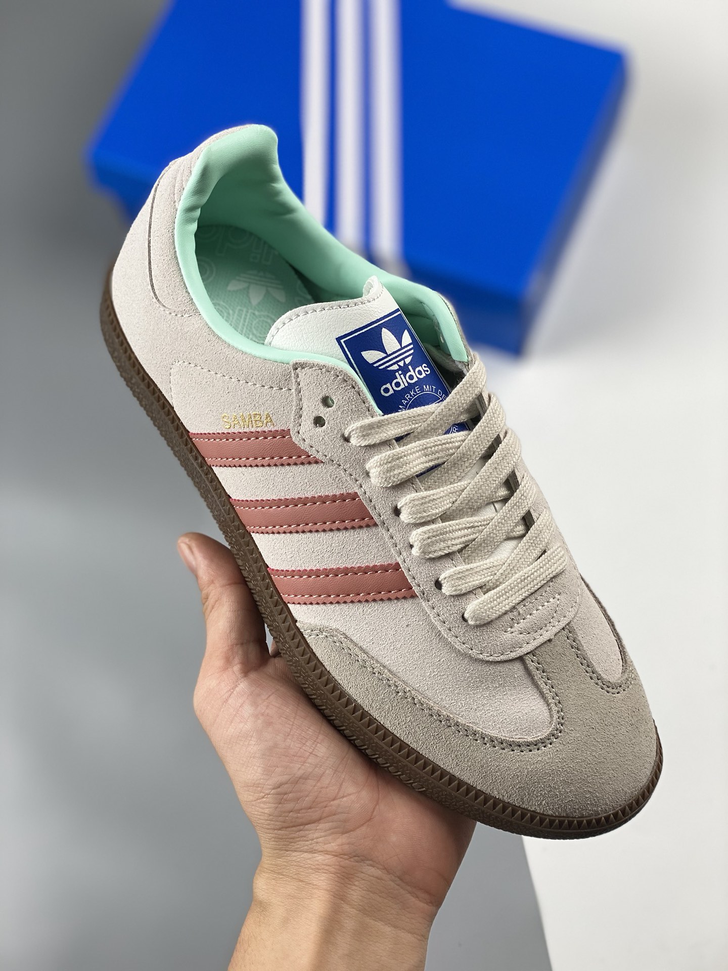 Adidas samba og Three Leaf Grass Ash Powder Tiffany's Cost Performance Ratio Ceiling First Trial Edition Samba Anniversary Series Differentiation Market Fake Leather Currency Adidas Classic samba og Made in the Last 70 Years, Original Full Layer Production ♨ Super soft top layer leather eliminates inferior imitation leather ‼ The slender shoe last, slightly pointed toe, and suede toe stitching are all elements that we can see, which are the soul of Samba's design. Product number: id2047