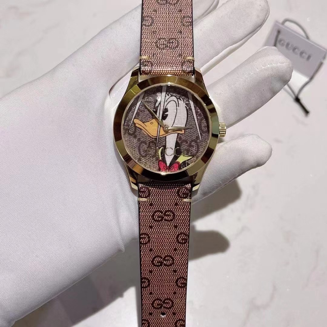 Gucci g-timeless series watch ⌚ The model ya1264167 incorporates innovative and unique prints and patterns every season, bringing a refreshing design. The legendary Disney animated characters inject a sense of whimsy into the brand's latest series. Decorated with vivid Donald Duck print patterns