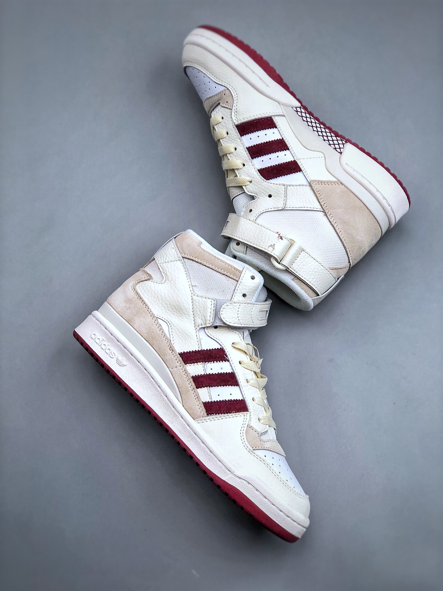 The adidas forum 84 high popular white and red piece classic retro high top basketball shoe features leather panels for a simple and versatile fit and comfort. The mesh shape on the inner side of the midsole serves as the finishing touch, while the rubber on the outsole adds a retro look! Article number: gx1520size: 36-45