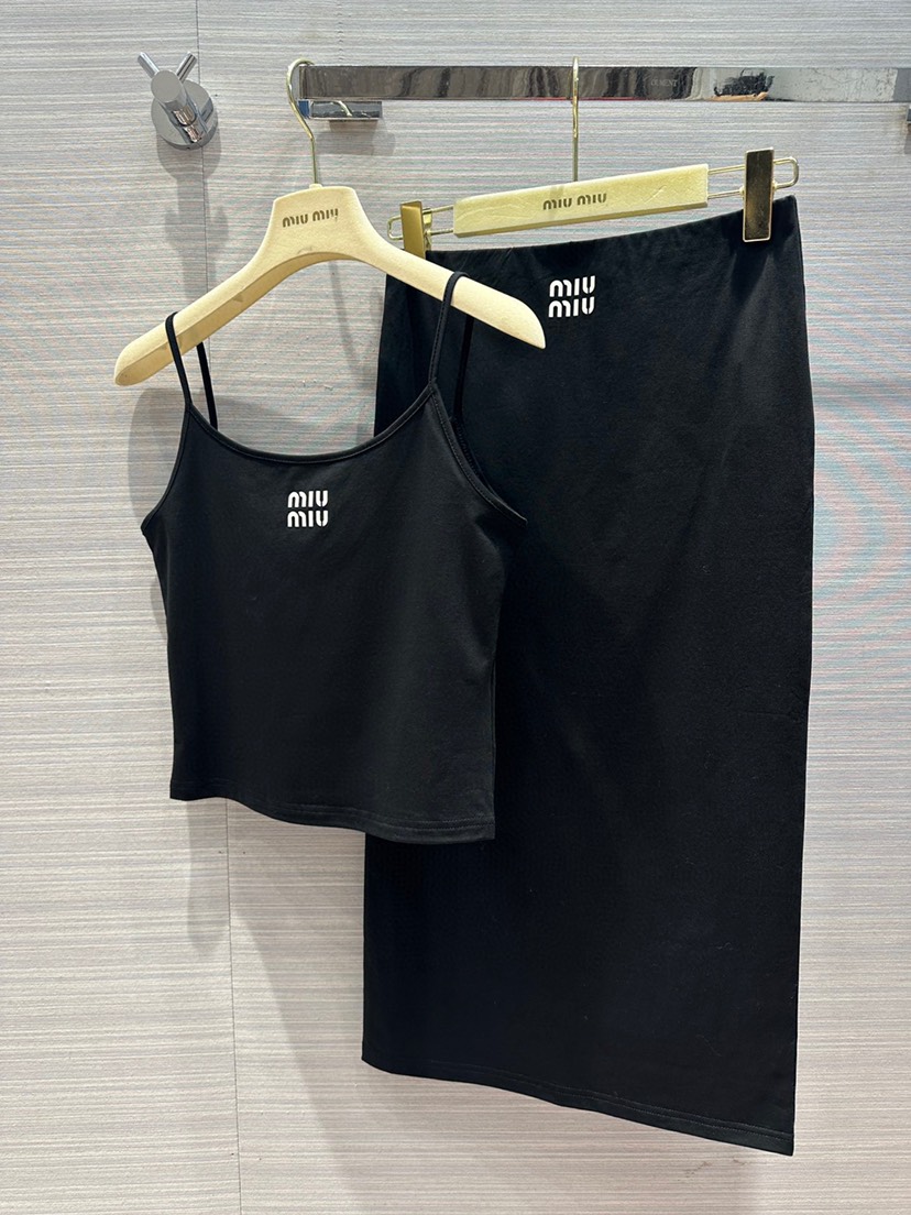 DetailExclusive Launch 🍒 Hot order recommendation! Mi * miu 23 Spring/Summer New Product! Temperament Spicy Girl Dress! Dynamic, energetic and full of sweet girl breath! Original custom small strap paired with mid length skirt! The rear split design is absolutely unique! Classic slimming silhouette can be sweet or salty! Imported pure cotton fabric has an excellent texture, and 3D three-dimensional cutting is versatile and slim! A must-have wardrobe item. It looks good when worn separately! Check the quality of the workmanship on your own. Strong retention! Three color 3 size. S size: Bust 74, length 42, waist 64, hips 78, skirt length 74