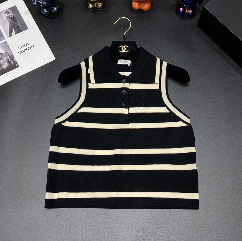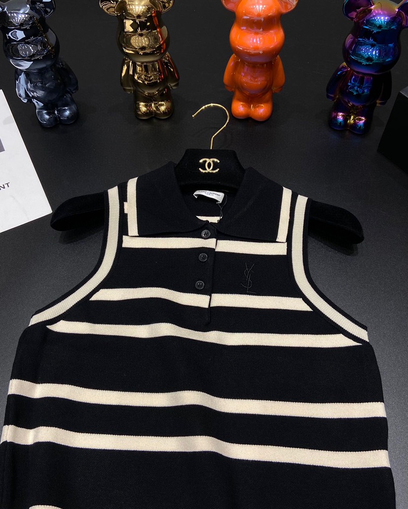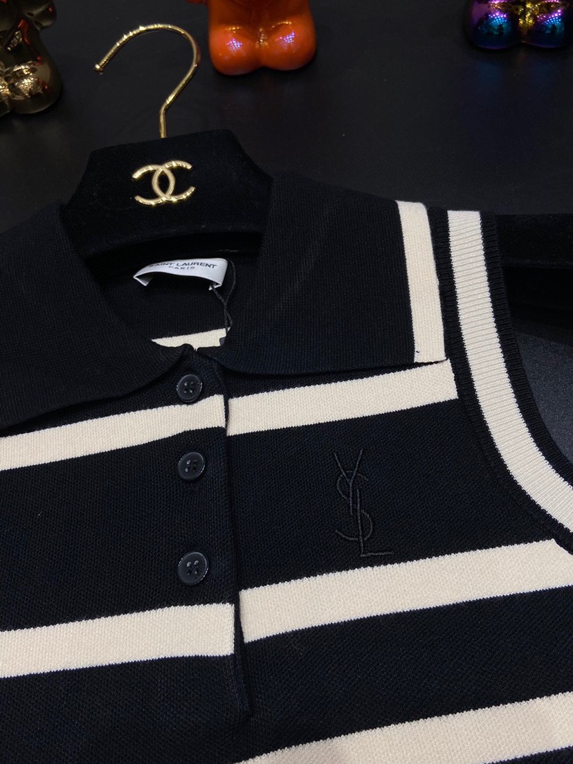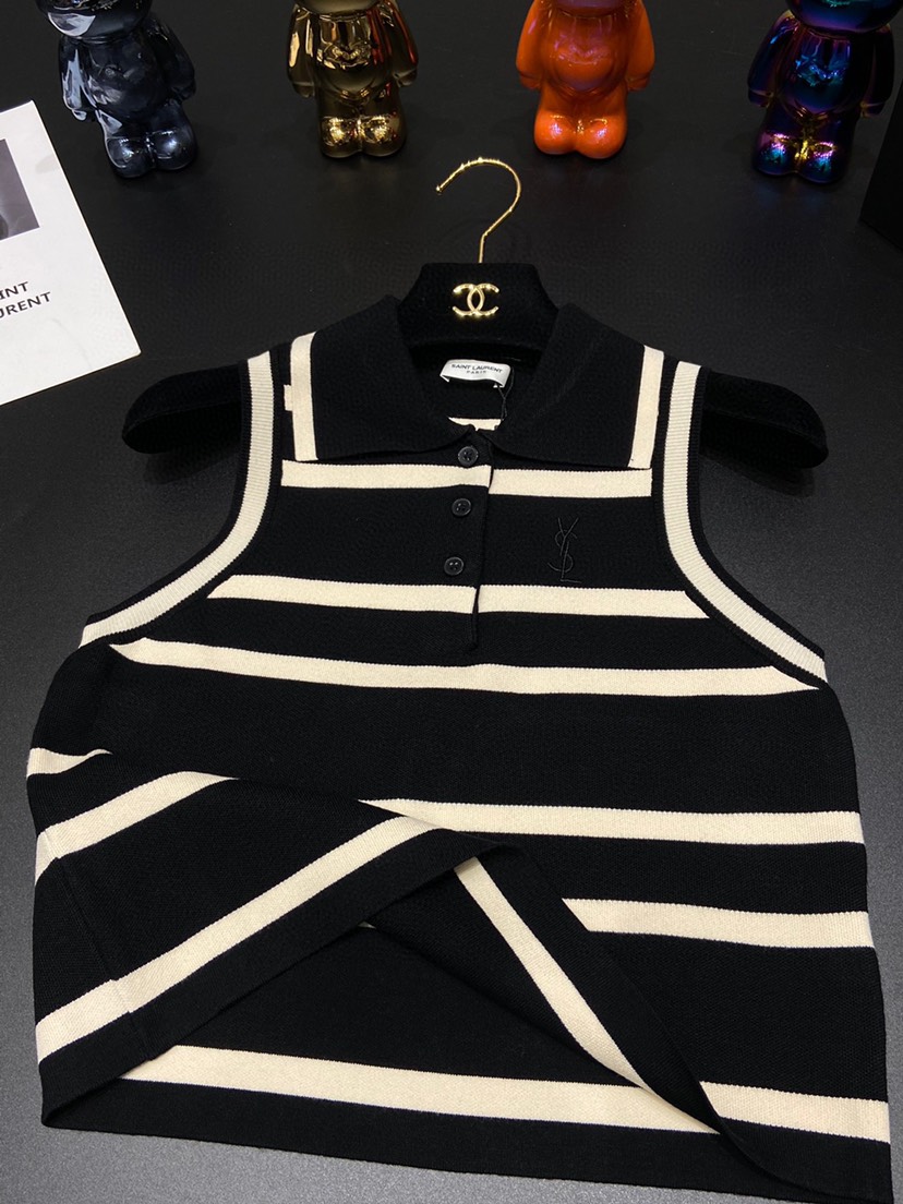 YS * 2023 New Polo Contrast Striped Polo Sleeveless Top 🖤 Embroidered letters on the chest synchronized on the official website 🔥 Size SML available from stock