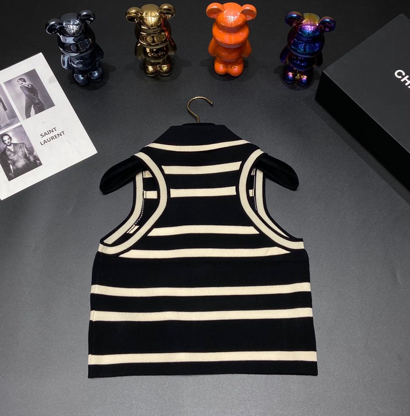 • New  Chanel 2023 New Polo Contrast Stripe Polo Sleeveless Top